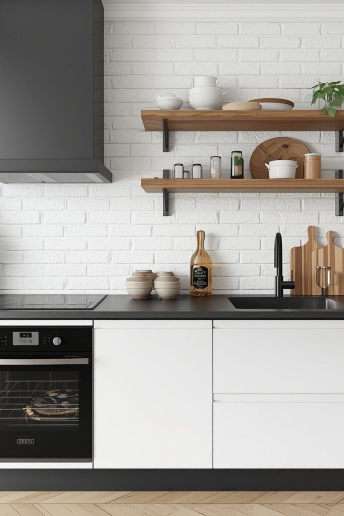In apartments and urban homes, painted brick provides softness without losing its structure. The slight roughness of brick helps kitchens feel lived-in and grounded. With minimal styling, a white brick wall can instantly become the focal point of a clean modern kitchen.