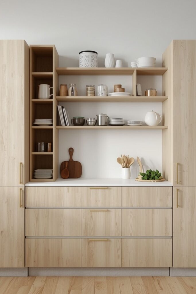 Displaying a small number of everyday objects, plates, cups, or a favorite bowl, adds personality without crowding the space. The result stays functional and beautiful at the same time.